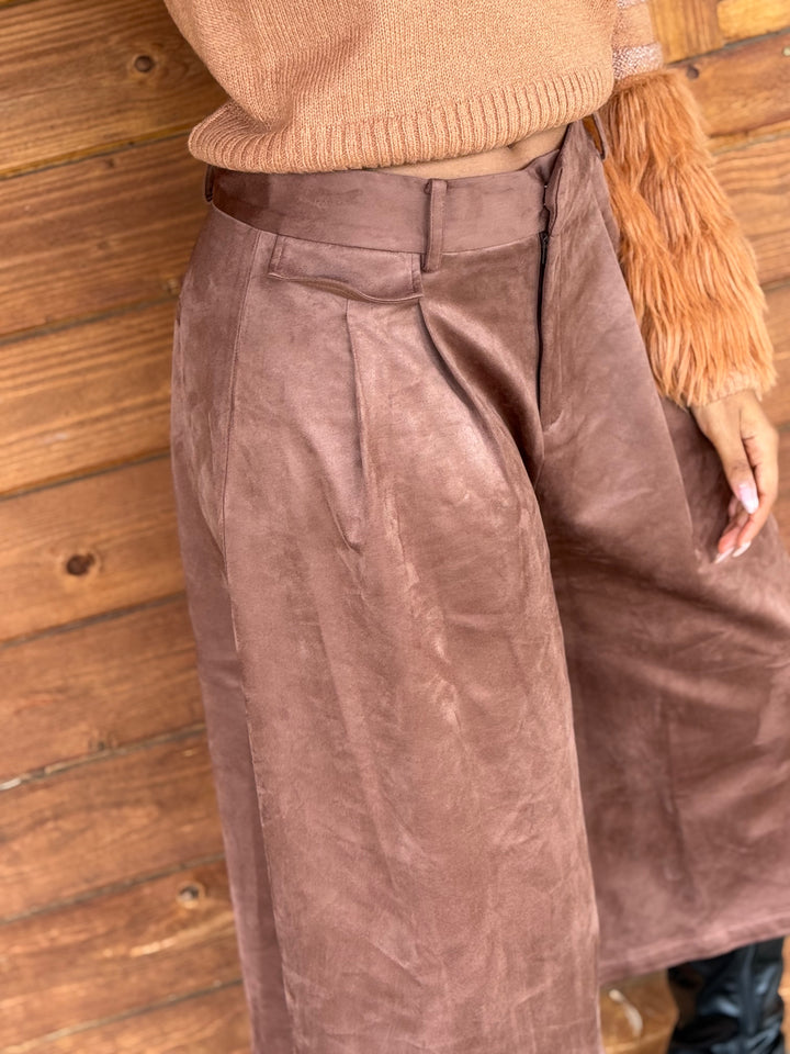 Bermuda wide leg in suede color cammello, super in tendenza!