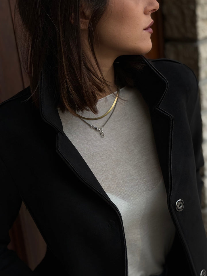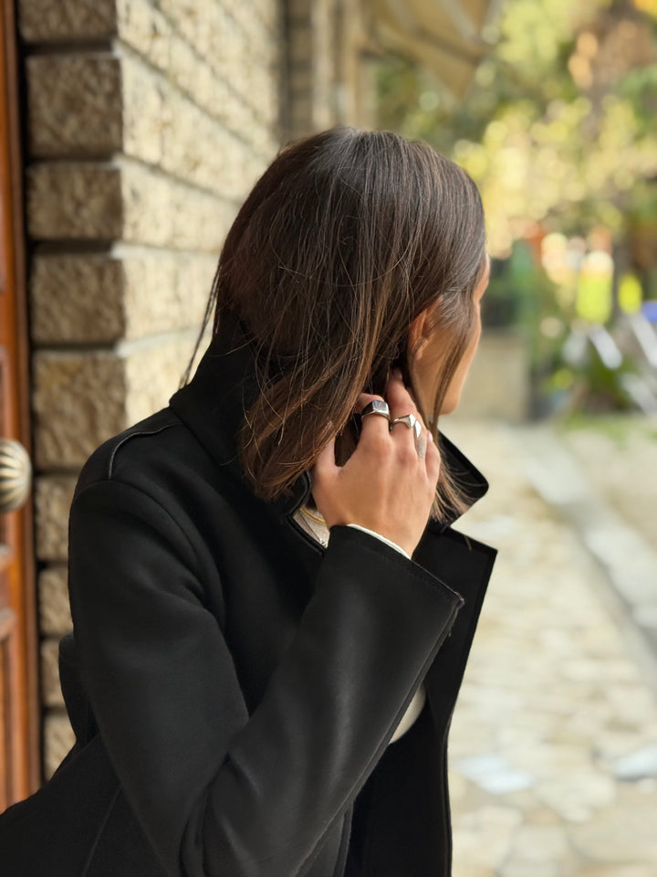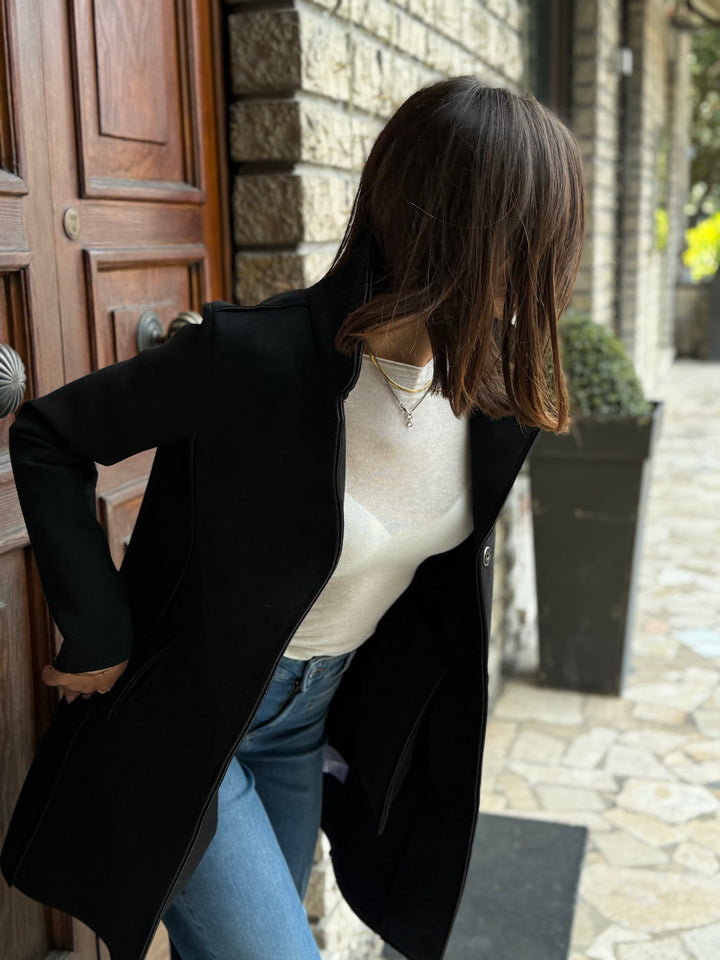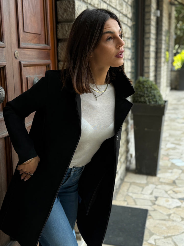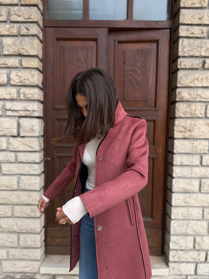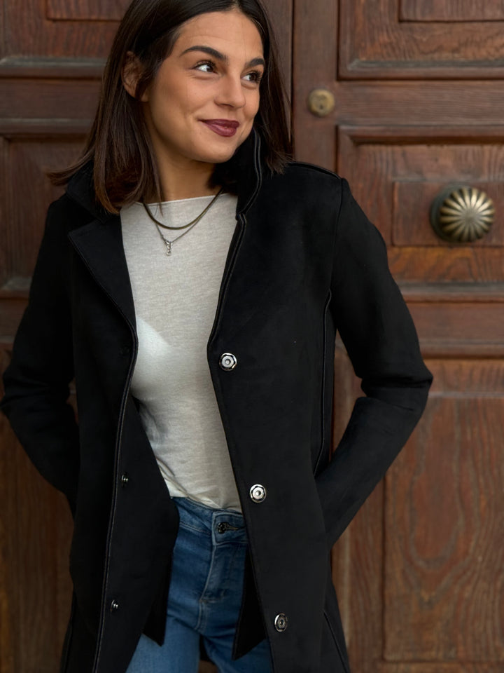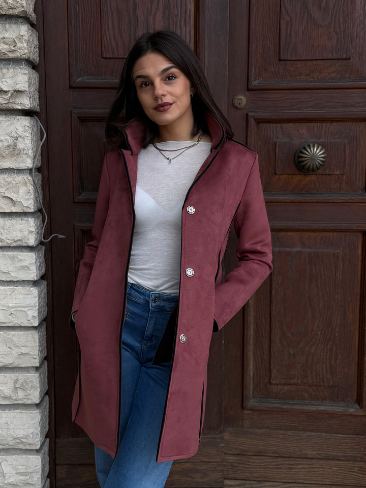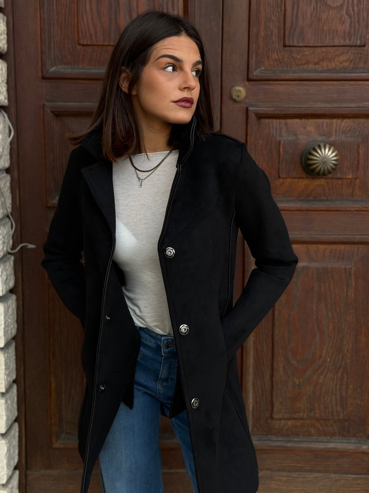 Cappotto midi LOKITA MILANO in neoprene effetto suede monopetto leggermente elasticizzato, con rever.