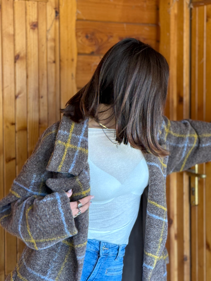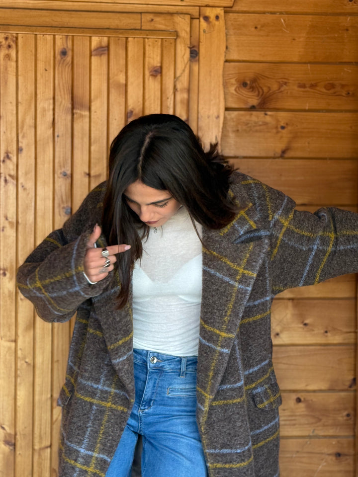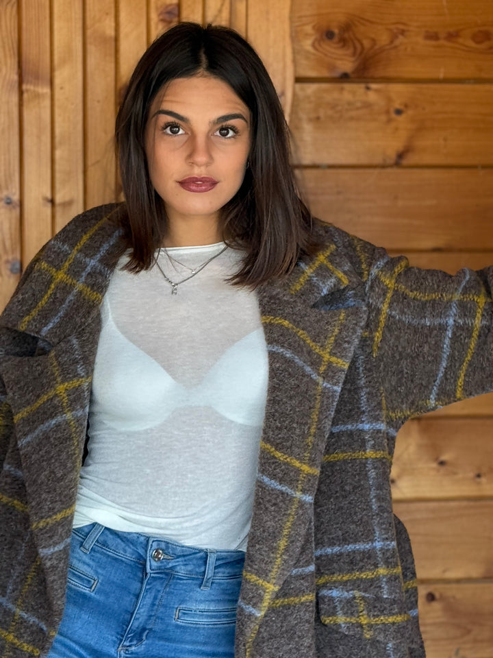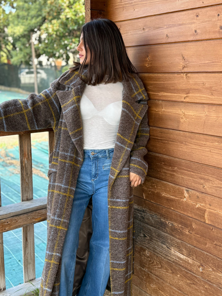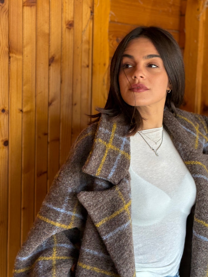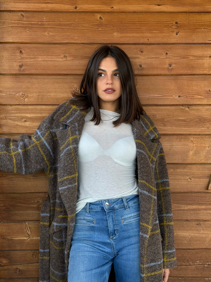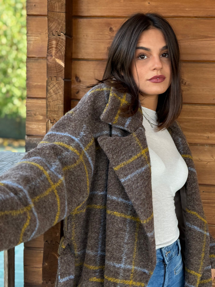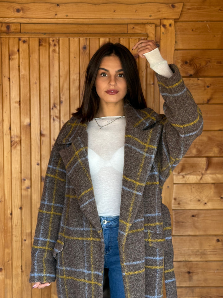 Splendido cappotto LOKITA MILANO a quadri con ampi rever e cintura.