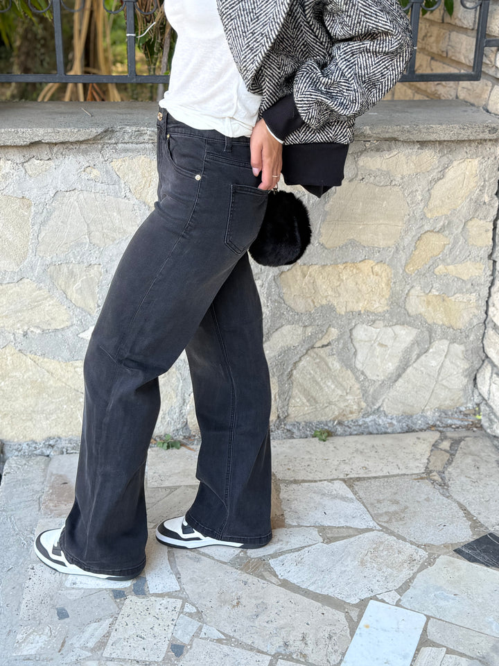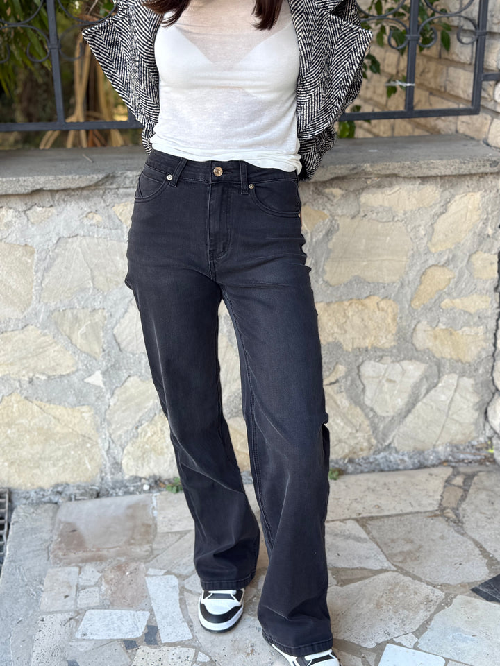 Must have della stagione, jeans flare leggermente elasticizzato lavaggio nero.