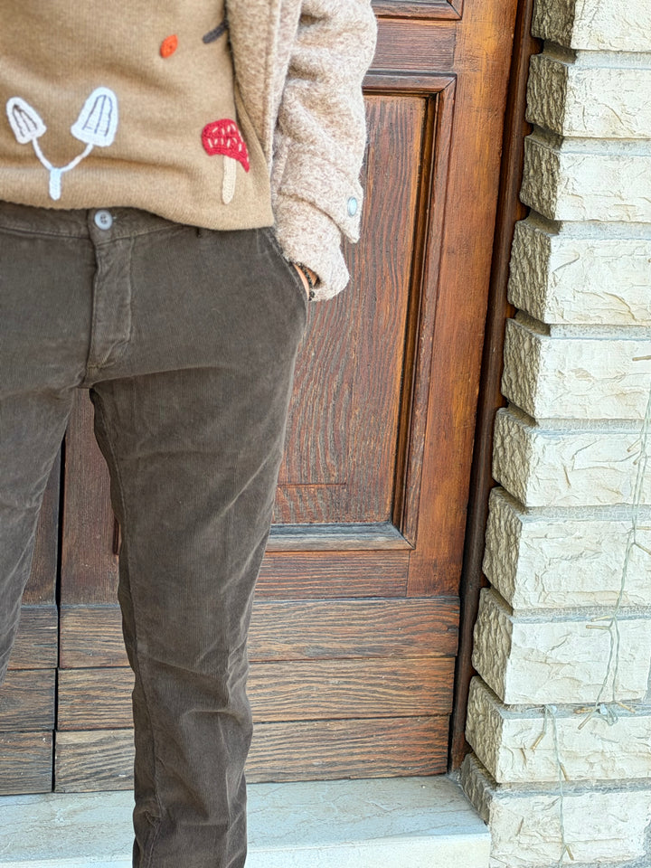 Pantalone uomo MODFITTERS mod. CARNABY in morbido velluto millerighe, vestibilità skinny.
