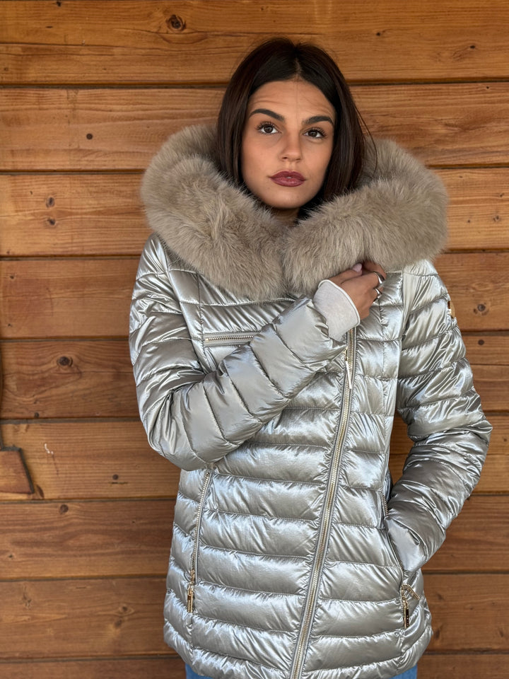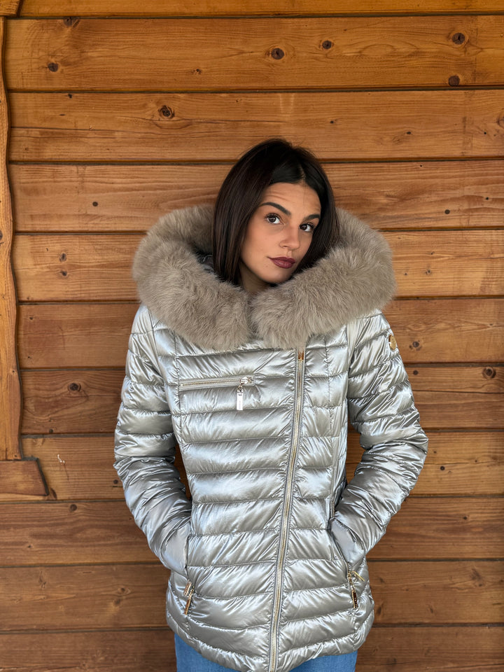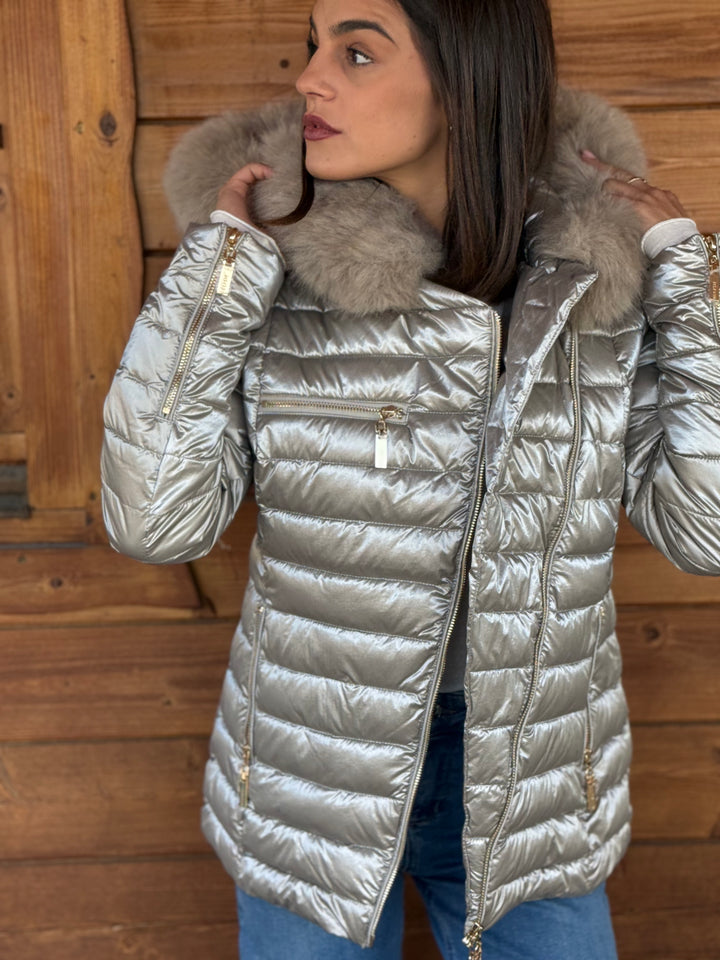 Pratico e sofisticato questo piumino corto unisce funzionalita' e stile con un design moderno dal finish satinato .