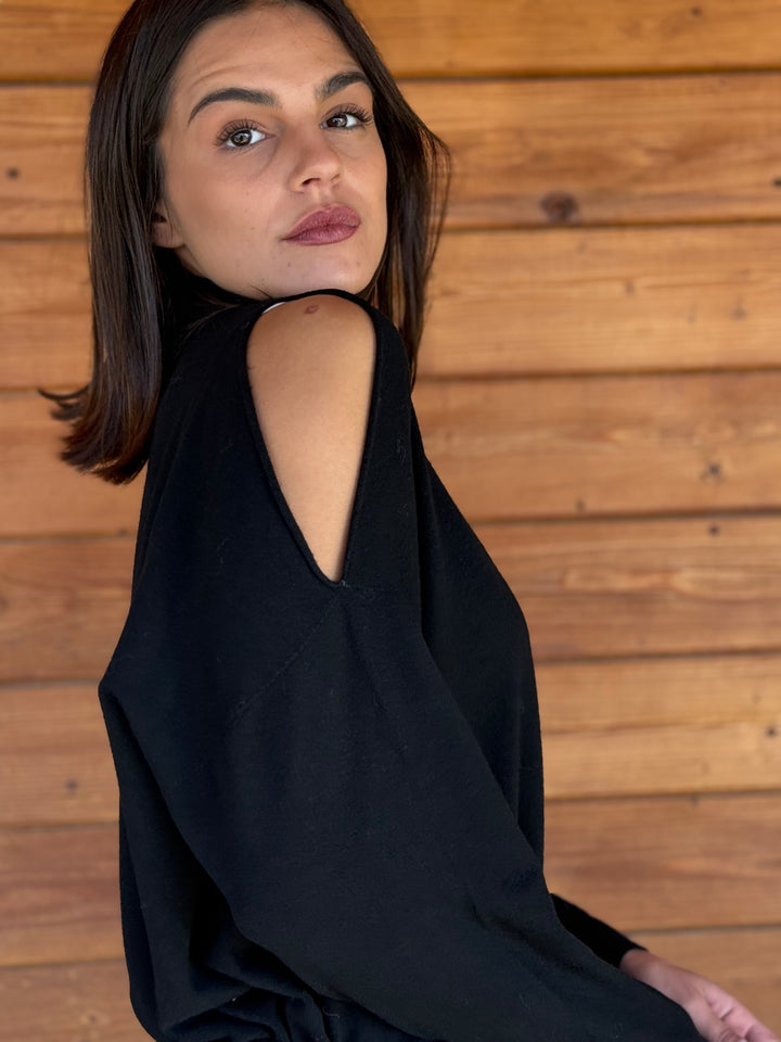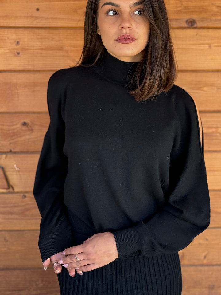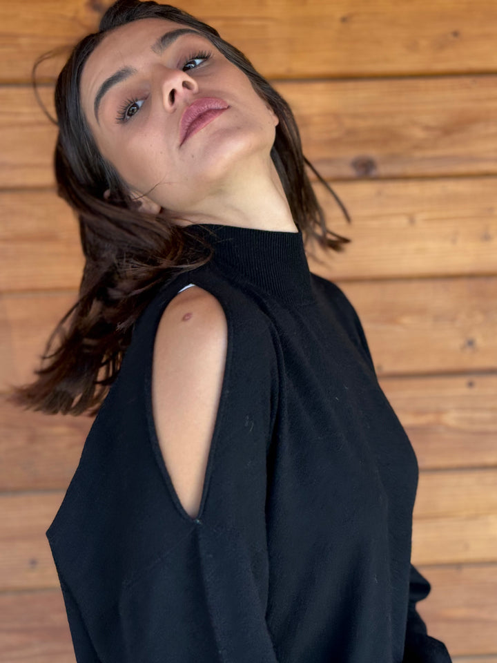 Pullover donna in misto viscosa con cut-out sulle spalle.