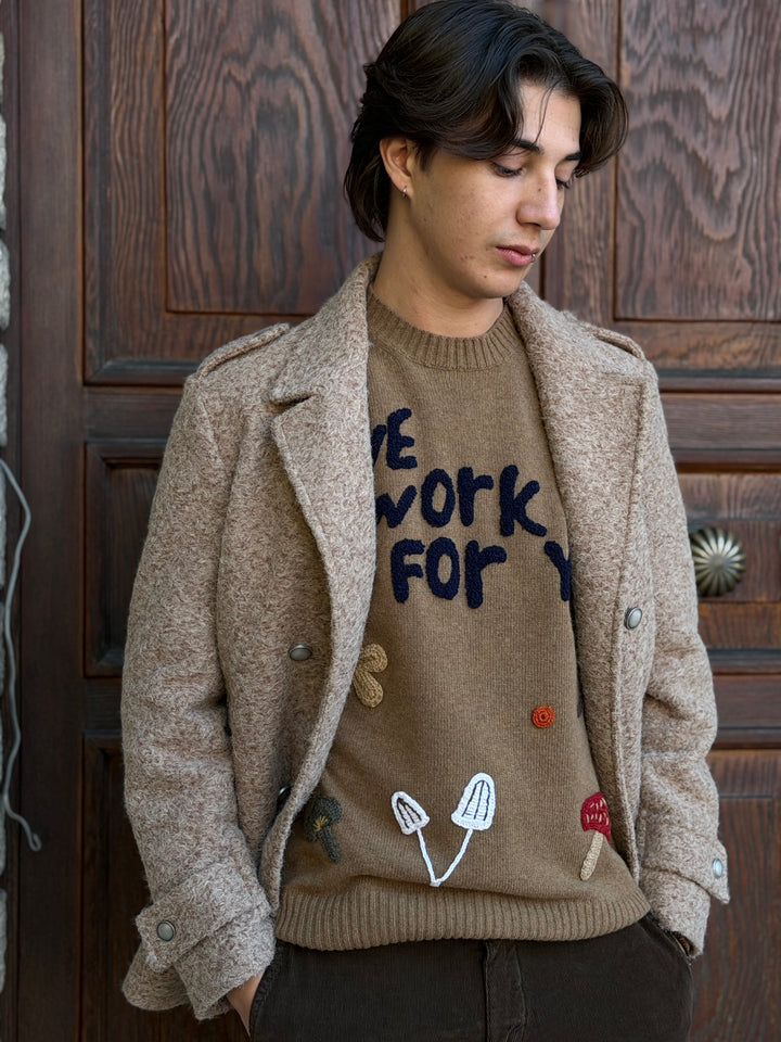 Splendido pullover uomo BOB 80% lana moderna. BOND, con ricami fatti a mano.